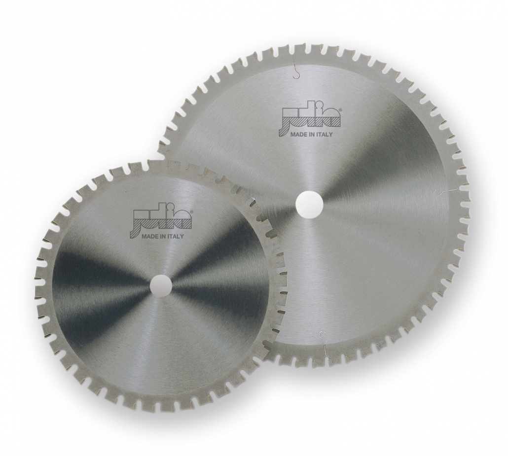 Julia produces carbide tipped circular sawblades to cut light alloys such as aluminium, zinc, copper, brass and bronze. The tooth geometry is trapezoidal with a negative or positive cutting angle. Thanks to our special teeth geometry and the noiseless system we can also reduce vibration, resulting in an excellent surface finish. All these blades can be used on automatic and manual sawing machines, for cutting tubes, profiles for window frames, and solid materials.